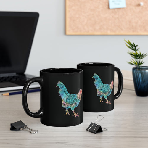 Black Mug (11oz, 15oz) - Laser Rooster Neon Polygon Design